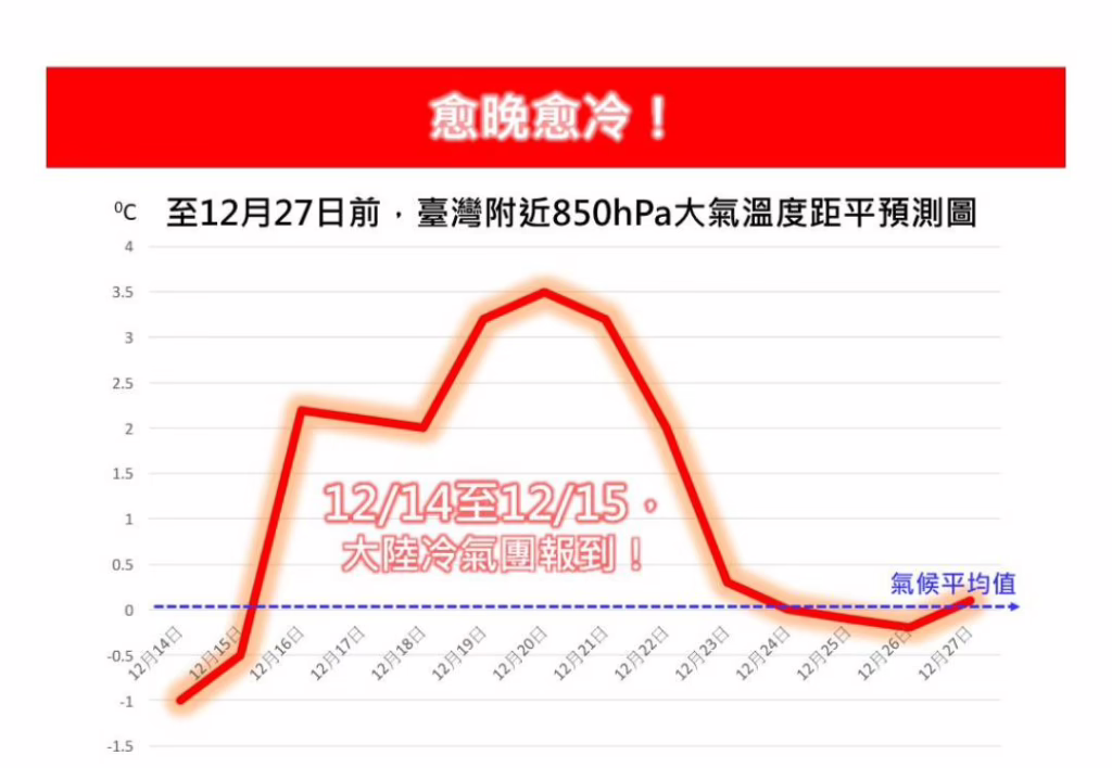 12/14日白天冷空氣持續南下,即使
